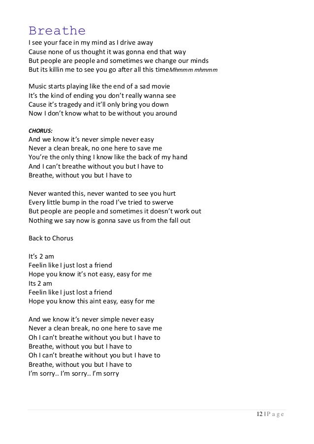 Song Lyrics In Chart Form